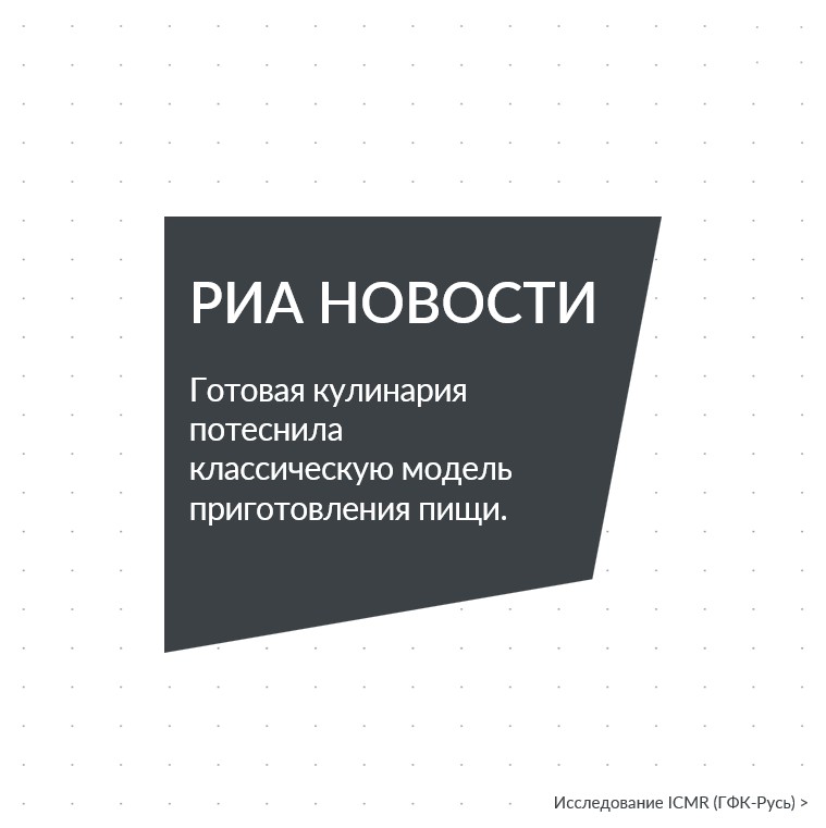 По данным синдикативного исследования ICMR (ГФК-Русь) жители России стали чаще отказываться от "традиционных" моделей питания с домашней выпечкой и семейными обедами в пользу готовых блюд.